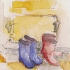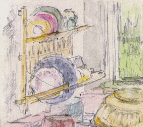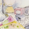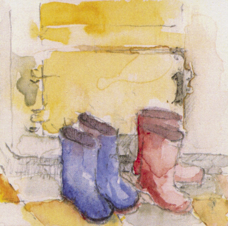 Since 2001 Jo has kept a visual diary - a daily pencil drawing whose content may range from a beautiful landscape carefully observed, to an item of domestic trivia such as a pile of laundry or washing-up, or quirky incident involving children or cats.
